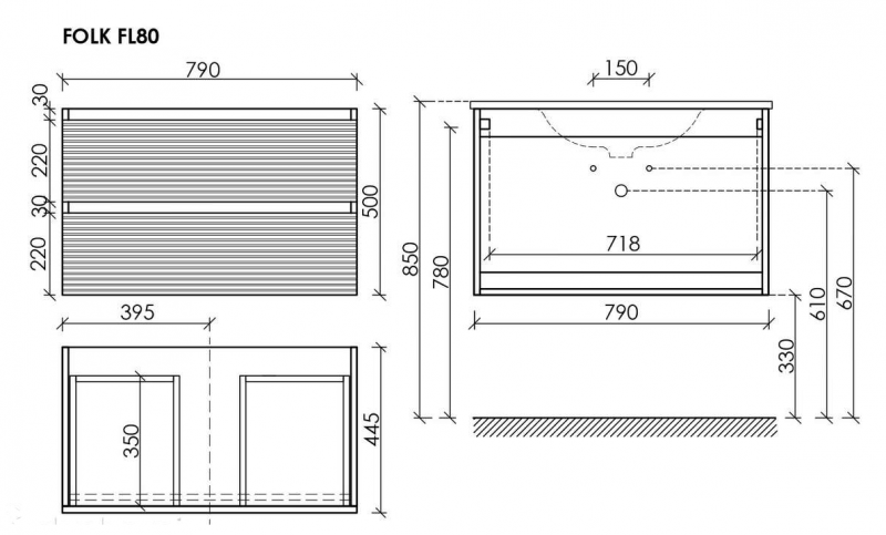 Тумба SANCOS подвесная Folk 2я цв. Ergraut Soft FL80ES Sancos