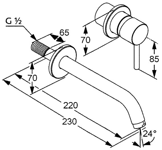 Смеситель для раковины настенный KLUDI BOZZ SET 2 отв. 230 мм + внутренняя часть 38243 Kludi