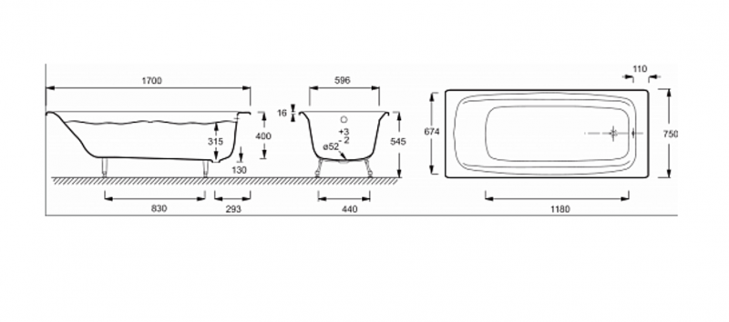Ванна чугунная Jacob Delafon DIAPASON (170*75) E2937-00 (перелив станд, AntiSlip) JACOB DELAFON